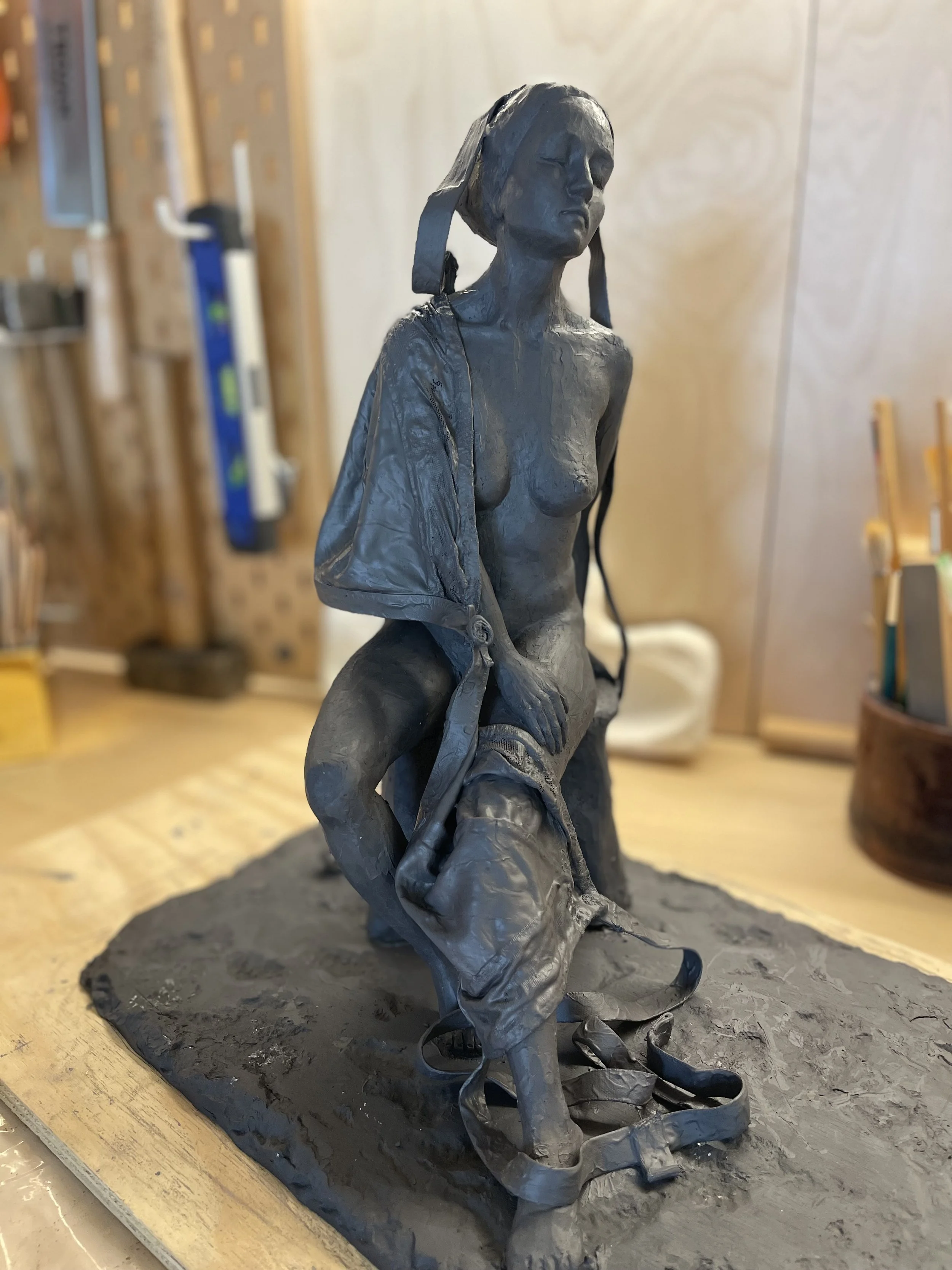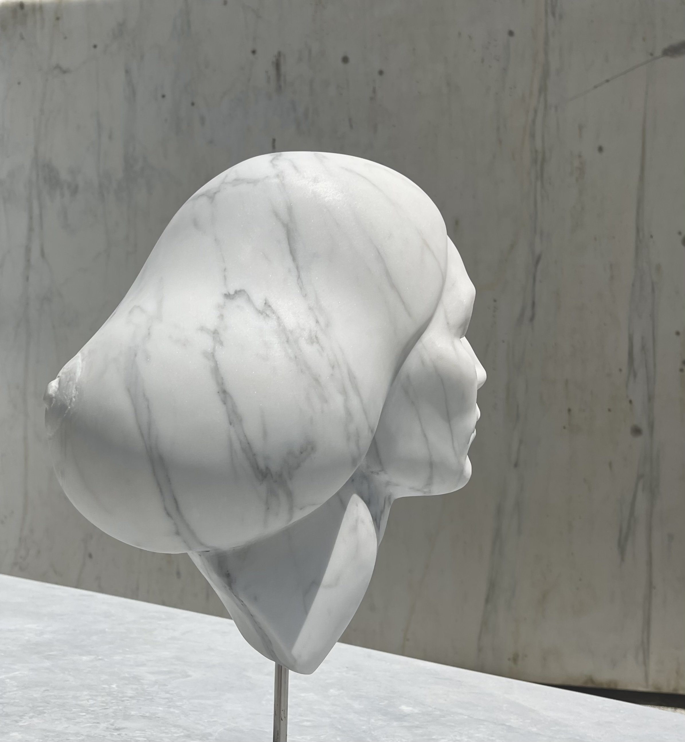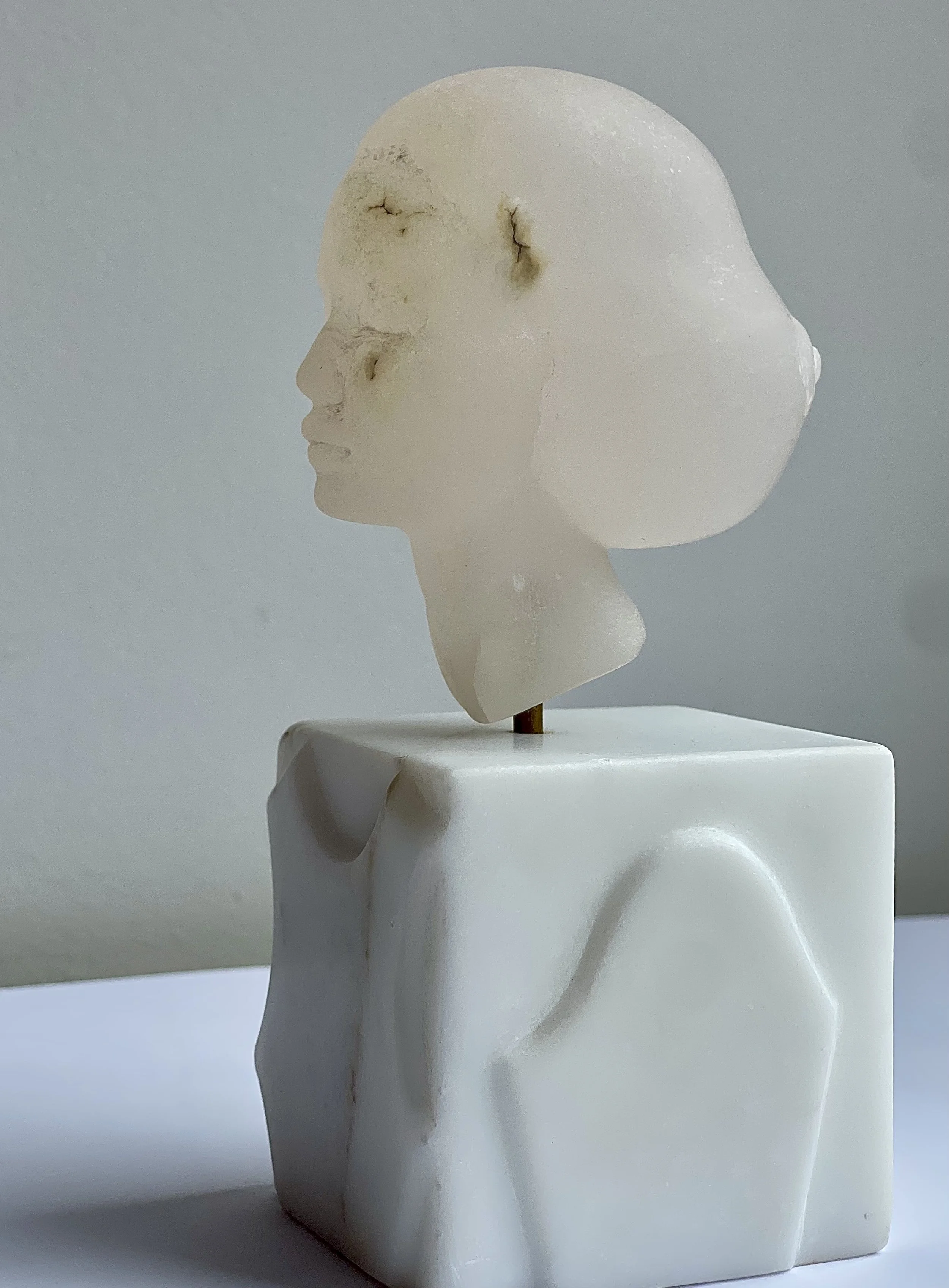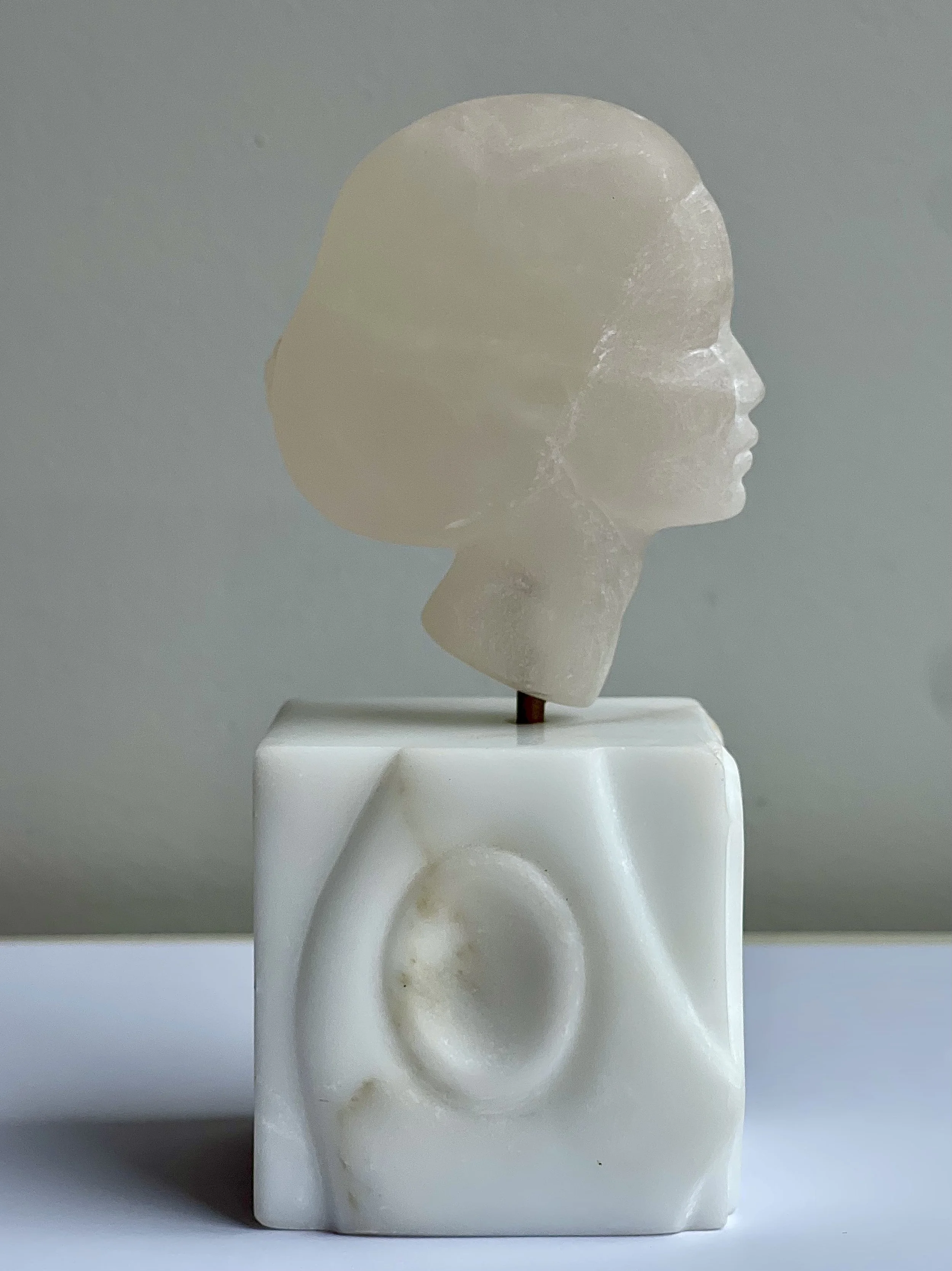 Italian alabaster on Carrara marble "Selfportrait" - Size W 7cm H 15 cm D 7 cm
